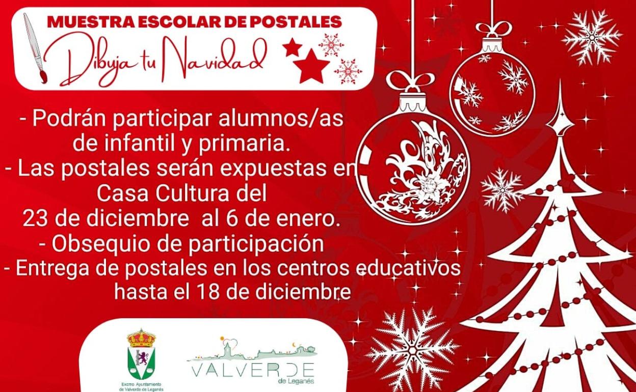 Desde el Ayuntamiento de Valverde de Leganés, en colaboración con los centros educativos de la localidad, se ha convocado la muestra escolar de postales 'Dibuja ... tu Navidad', dirigida a todos los alumnos de la localidad.