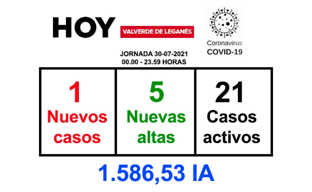 Sigue bajando la incidencia del coronavirus en Valverde de Leganés. La jornada de este viernes 30 de julio ha dejado 1 solo positivo y la ... recuperación de 5 personas, lo que baja el número casos activos hasta las 21 personas.