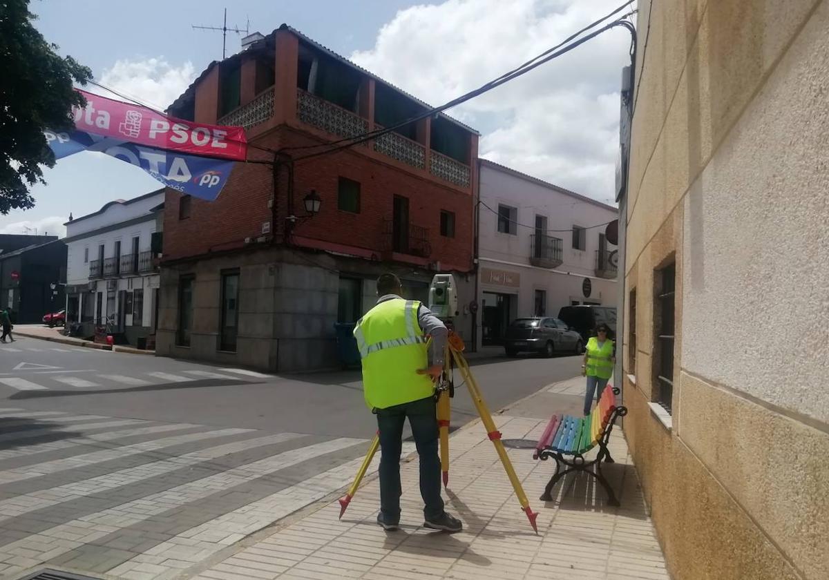 El proyecto del Arroyo La Nave a su paso por el centro de Valverde de Leganés ha dado comienzo con las primeras mediciones técnicas realizadas por los operarios en la calle Bonal.