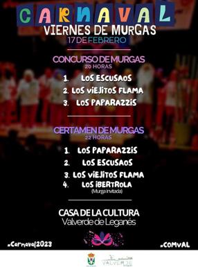 Se trata de la XXI edición del COMVAL, por el que han pasado cientos de carnavaleros y diversas agrupaciones. Este año se subirán a las tablas tres murgas de Valverde de Leganés: Los Escusaos, Los Viejitos Flama y Los Paparazzis.