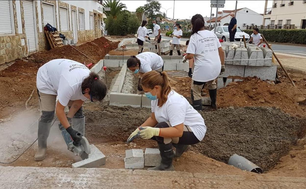 Las labores están siendo realizadas por los alumnos de la Escuela Profesional 'El Rebellao II', bajo las indicaciones de sus profesores. Están poniendo una gran ilusión en esta construcción que finalmente servirá para el disfrute de los demás ciudadanos y que, a ellos, ahora les está sirviendo de aprendizaje.