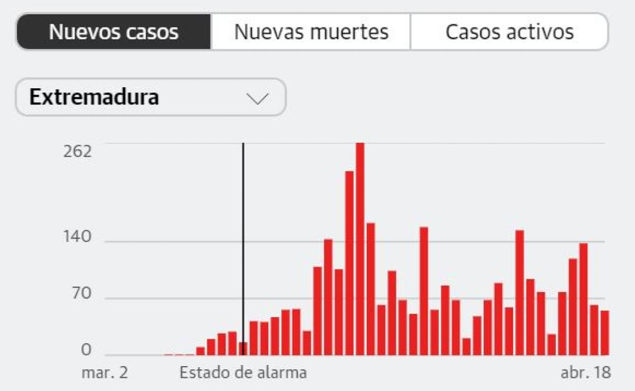 Cuatro personas han fallecido por coronavirus en las últimas 24 horas en Extremadura, con lo que la cifra total de muertos se sitúa en 384, ... y el número de contagiados se incrementa en 61, menos de la mitad que el día anterior, situando el total en 3.192, según los últimos datos del Ministerio de Sanidad.