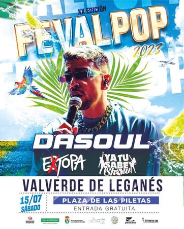 Se trata del XX Fevalpop 2023, que tendrá como concierto principal el del artista urbano Dasoul, un artista canario de 33 años de género latino que en 2021 firmó un contrato artístico con Roster Music y ha realizado varias colaboraciones con otros artistas como XRIZ y Danny Romero. Entre sus temas más destacados están 'El no te da', 'Vuela corazón' o 'La bienvenida al amor'.
