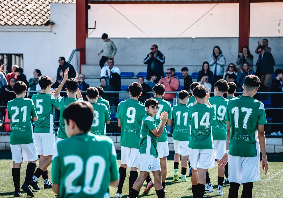 El equipo infantil sumó una nueva victoria ganando 5 – 2 al Sportextremadura CD D. Se adelantaron los pacenses con gol de Roberto, pero un doblete de Daniel Borrego, que ha regresado tras una larga lesión, dio la vuelta al marcador. Empató el equipo visitante con tanto de Alberto. Pero William, y otros dos goles de Daniel Borrego, dieron el triunfo a los valverdeños.