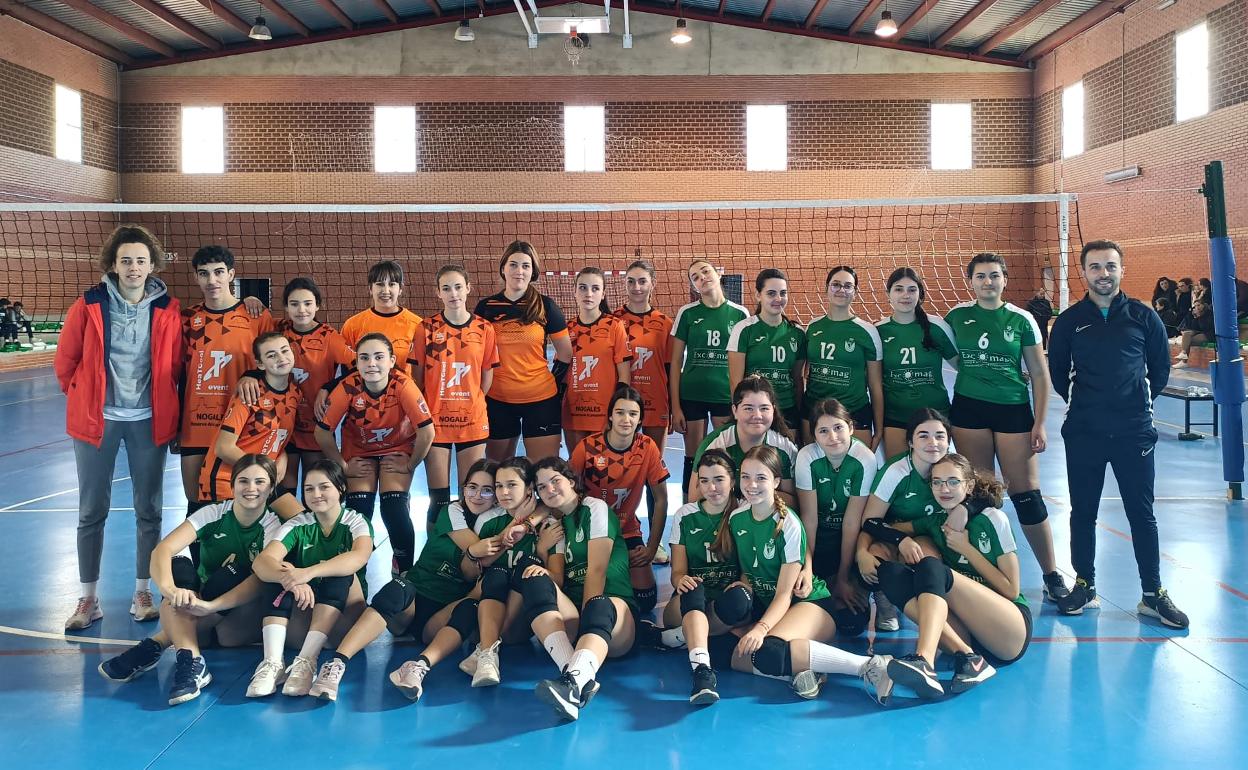 Dentro de los torneos solidarios de voleibol que se han organizado en el pabellón polideportivo de Valverde de Leganés para estas Navidades, este martes se disputó un nuevo encuentro entre las cadetes valverdeñas y las cadetes de Nogales.