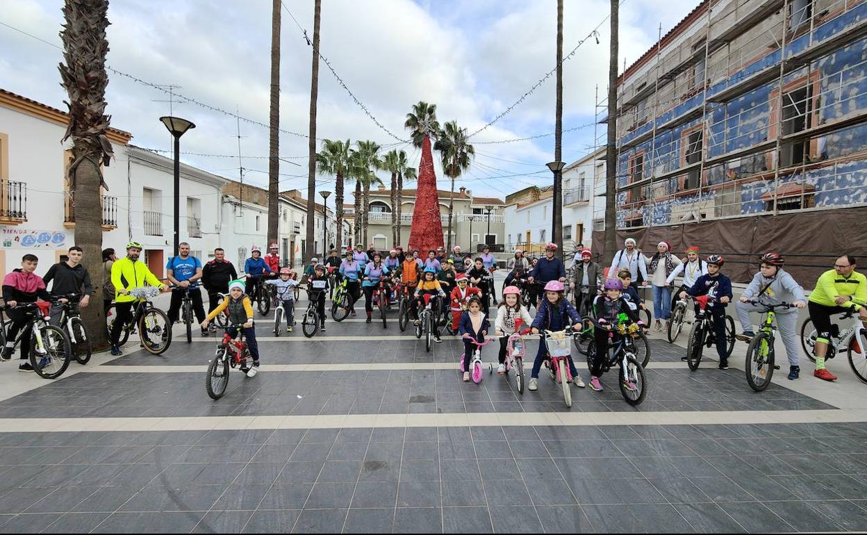 Este viernes por la tarde, más de 60 ciclistas se dieron cita en la plaza de la Constitución para participar en el tradicional paseo navideño que recorre algunas calles de la localidad. Pequeños, jóvenes y mayores disfrutaron de este divertido paseo, ataviados con gorros de Papá Noel para darle ese toque navideño a la actividad.
