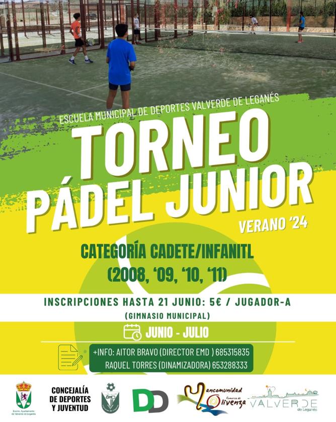 Este verano, la Escuela Municipal de Deportes de Valverde de Leganés ha preparado un nuevo torneo de pádel junior para los jóvenes de la localidad.