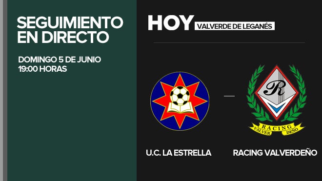 Hoy a las 19.00 se disputará el trascendental encuentro entre UC La Estrella y el Racing Valverdeño del que saldrá el equipo que juegue ... la próxima temporada en Tercera División. Los de Los Santos de Maimona llevan una clara ventaja de 1-3 del encuentro de ida disputado la semana pasada en el Municipal de San Roque, pero como en el fútbol todo es posible, hasta el pitido final del encuentro de vuelta no se puede cantar victoria.
