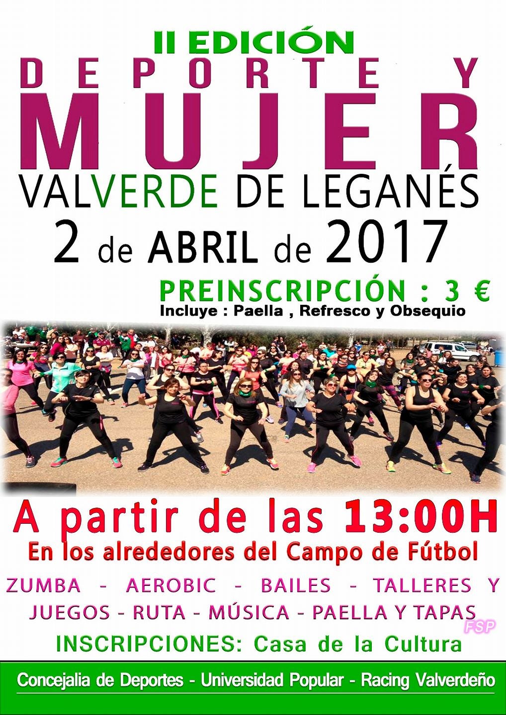 Tras el éxito que tuvo la primera edición de «Deporte y Mujer» del año pasado que contó con la participación de cientos de personas, desde la Concejalía de Deportes del Ayuntamiento de Valverde de Leganés, con la colaboración de la Universidad Popular y el Racing Valverdeño, se organiza esta nueva edición con el fin de hacer pasar un gran día a todos los valverdeños, en especial a las mujeres, a la vez que hacen y practican deportes.