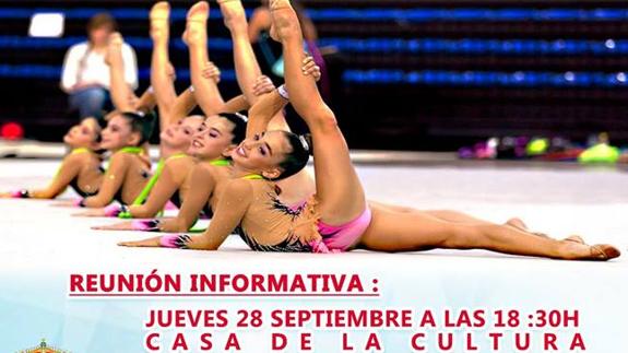 Se trata de gimnasia rítmica para niños. Todos aquellos padres que estén interesados en apuntar a sus hijos a dicha actividad tienen que asistir a la reunión informativa que tendrá lugar el próximo jueves 28 de septiembre a las 18.30 horas en la Casa de la Cultura.