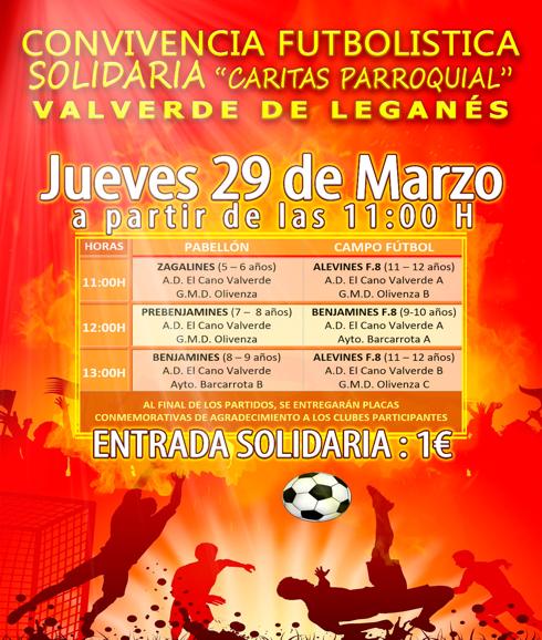 Valverde de Leganés acoge este jueves una convivencia futbolística y solidaria Cáritas Parroquial, que contará con la participación de numerosos pequeños que disfrutarán de una ... mañana deportiva, practicando su actividad favorita, el fútbol.