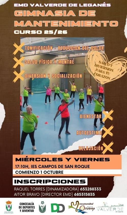 Con el objetivo de fomentar la actividad física y el bienestar entre los vecinos, el próximo 1 de octubre dará comienzo una nueva temporada de gimnasia de mantenimiento en Valverde de Leganés.