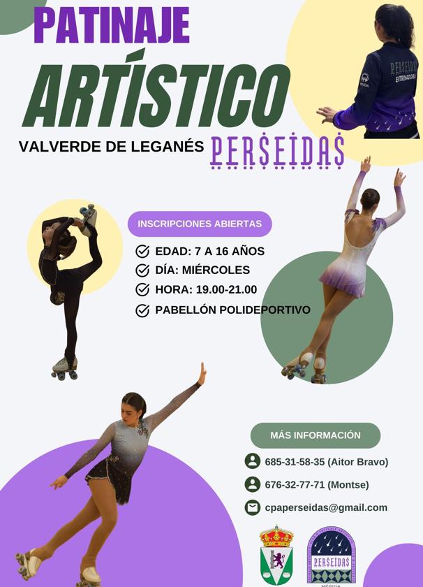 La Escuela Municipal de Deportes de Valverde de Leganés amplia sus propuestas ofreciendo la posibilidad de aprender y perfeccionar el patinaje artístico de la mano del Club Perseidas, con origen en Mérida.