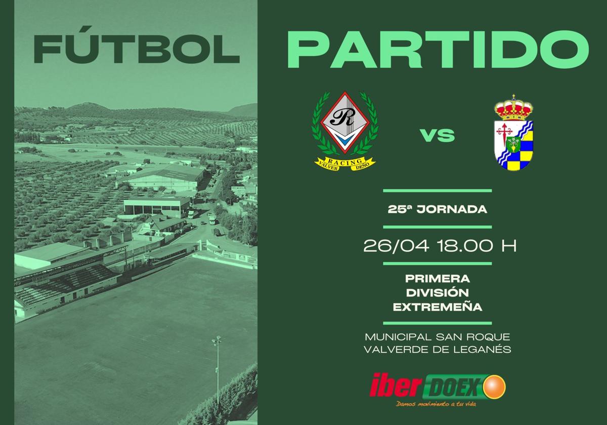 El Racing CP Valverdeño recibe esta tarde al colista del grupo, el ya descendido UP Barbaño, en el que será el último encuentro de los ... valverdeños en el Municipal de San Roque esta temporada.