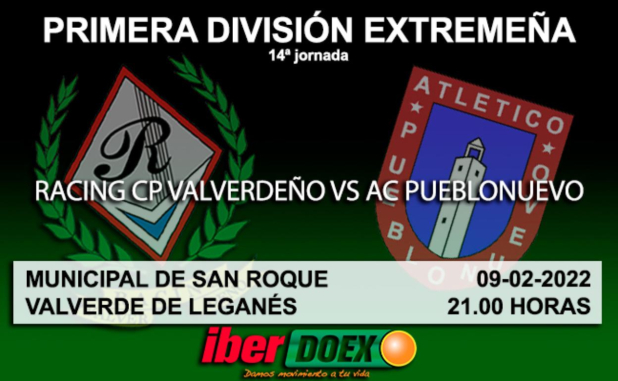Este miércoles, el Municipal de San Roque acogerá la primera gran final para el Racing Valverdeño con la visita del líder del grupo, el Pueblonuevo, en el encuentro que aplazado por contagios COVID-19 de la 14ª jornada de liga.