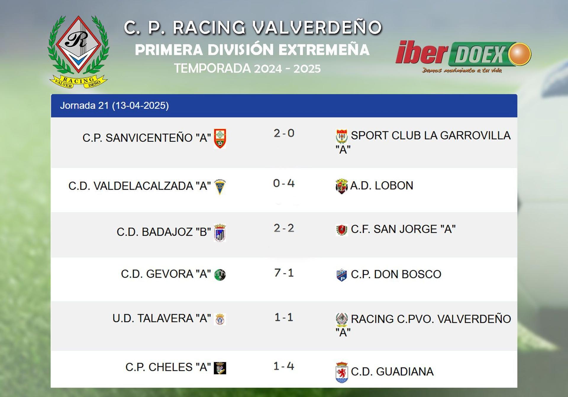 Justo reparto de puntos con dos equipos que no se jugaban prácticamente nada. Los de casa ya tenían asegurado el playoff de ascenso y lo único que tenían que hacer es no perder en alguno de los dos partidos restantes para mantener el subcampeonato, consiguiendo parte de su objetivo ante un Racing que haga lo que haga en la última jornada, finalizará noveno ya que tienen 21 puntos, cuatro menos que el octavo, el CF San Jorge, y siete más que el décimo, el filial del CD Badajoz. Este último partido será el domingo que viene, 27 de abril, en el que recibe al líder y ya campeón del grupo, el CD Gévora.