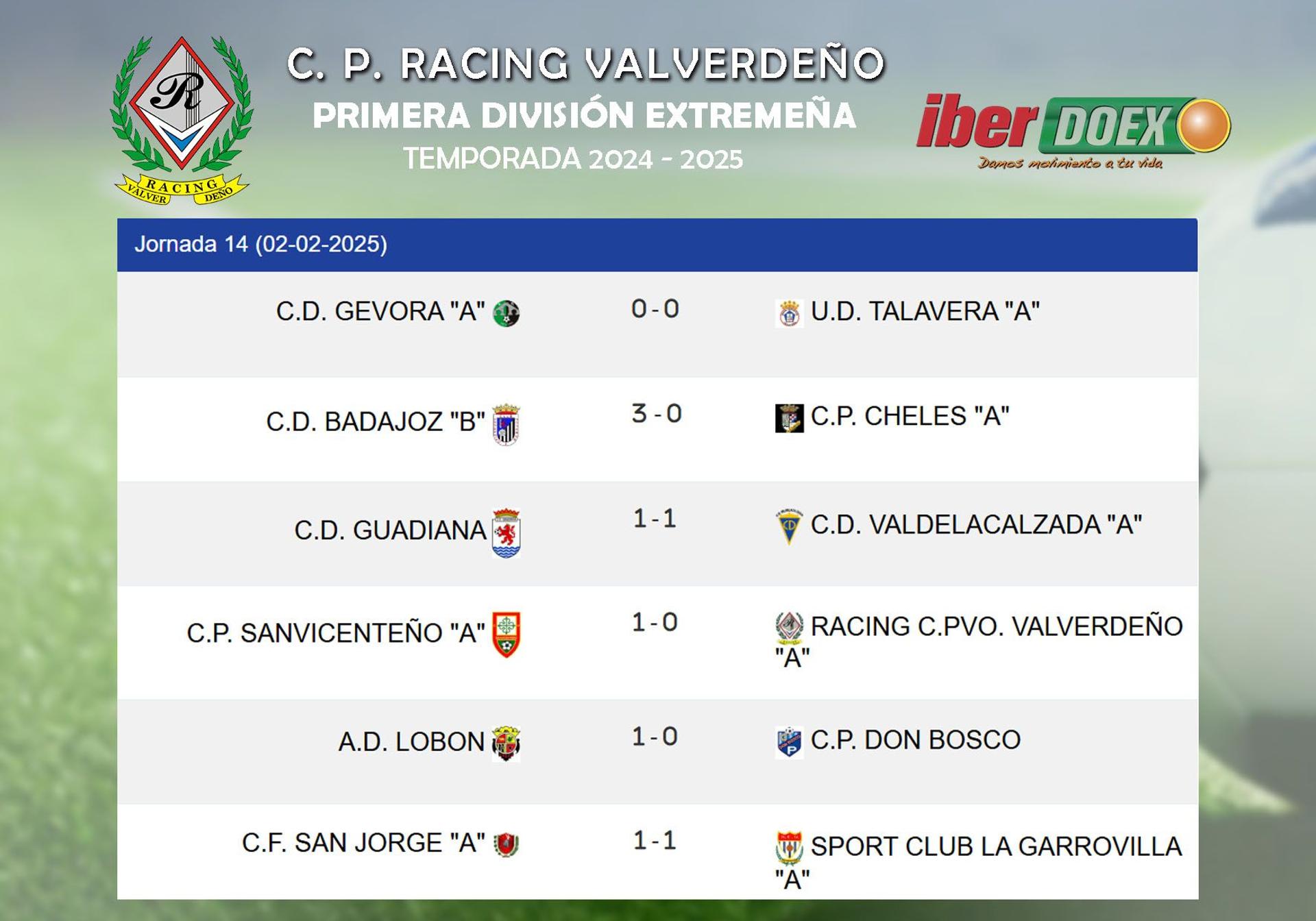 El Racing sigue clasificado en noveno lugar con 15 puntos. Por encima, el CF San Jorge tiene dos puntos más, y por debajo, el CD Badajoz B se ha acercado y está a solo cuatro puntos.