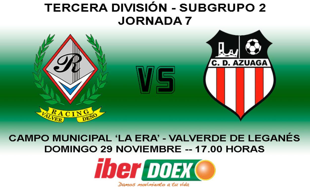 Este domingo, Racing Valverdeño y Azuaga, sexto y quinto respectivamente, empatados a ocho puntos, disputan un difícil y entretenido encuentro en el que los hombres ... de Félix Pedro intentarán conseguir la tercera victoria consecutiva que les dé un pequeño margen con los puestos de descenso.