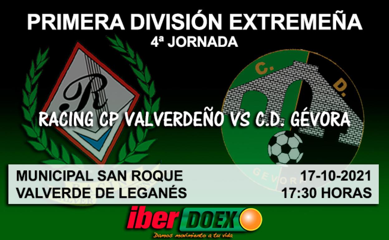 Tras un fin de semana de descanso, vuelve la Primera División Extremeña. El Racing Valverdeño recibe esta tarde en Valverde de Leganés al C.D. Gévora, quinto clasificado del grupo.