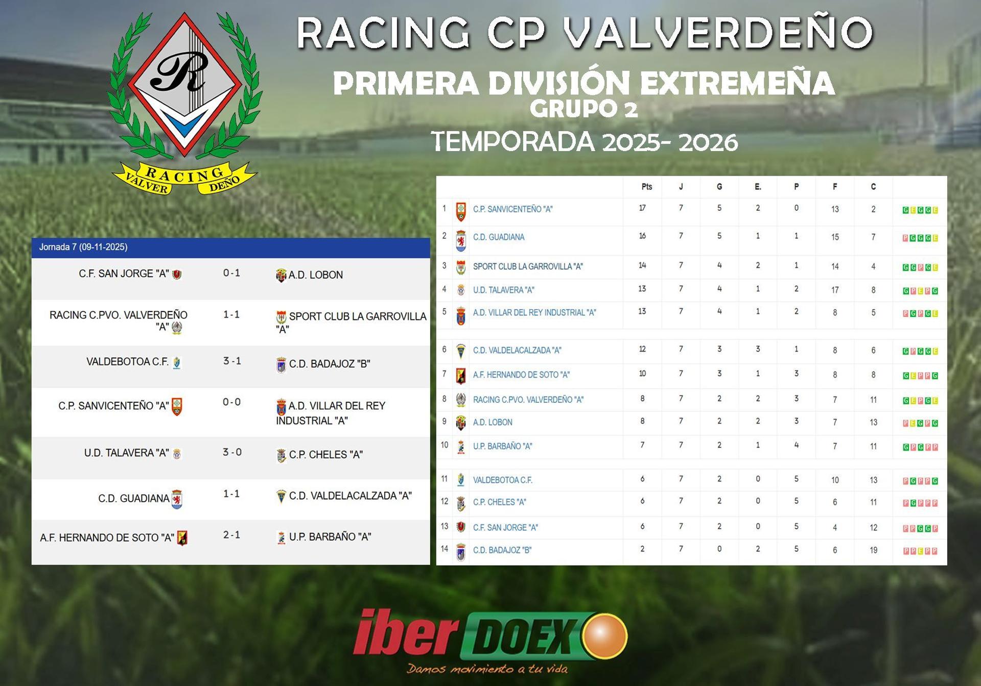 Con este resultado, el Racing Valverdeño sube al octavo puesto con 8 puntos, empatado con el AD Lobón, noveno. El próximo domingo, los valverdeños visitarán al CD Badajoz B, colista del grupo con solo dos puntos, en un encuentro clave para seguir sumando y escalar posiciones en la clasificación.
