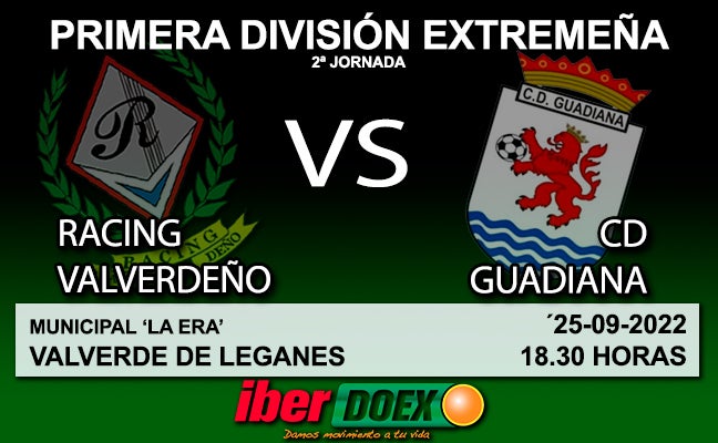 El Racing Valverdeño afronta la segunda jornada de liga con su primer encuentro en casa, en el Municipal 'La Era', recibiendo al Guadiana, el anterior equipo del actual entrenador valverdeño, Alfredo Soriano.