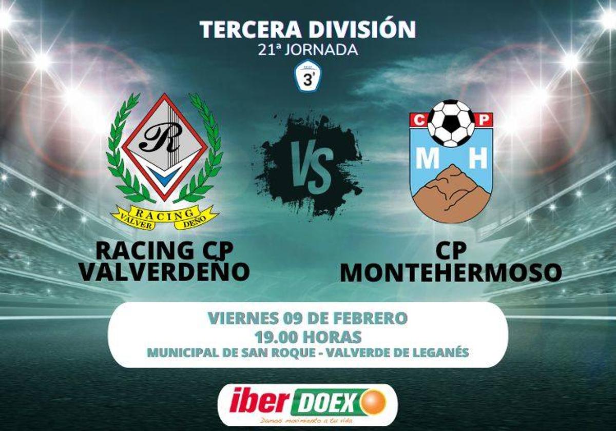 Racing CP Valverde y CP Montehermoso se enfrentan esta tarde en el Municipal de San Roque de Valverde de Leganés en la 21ª jornada de ... la Tercera División.