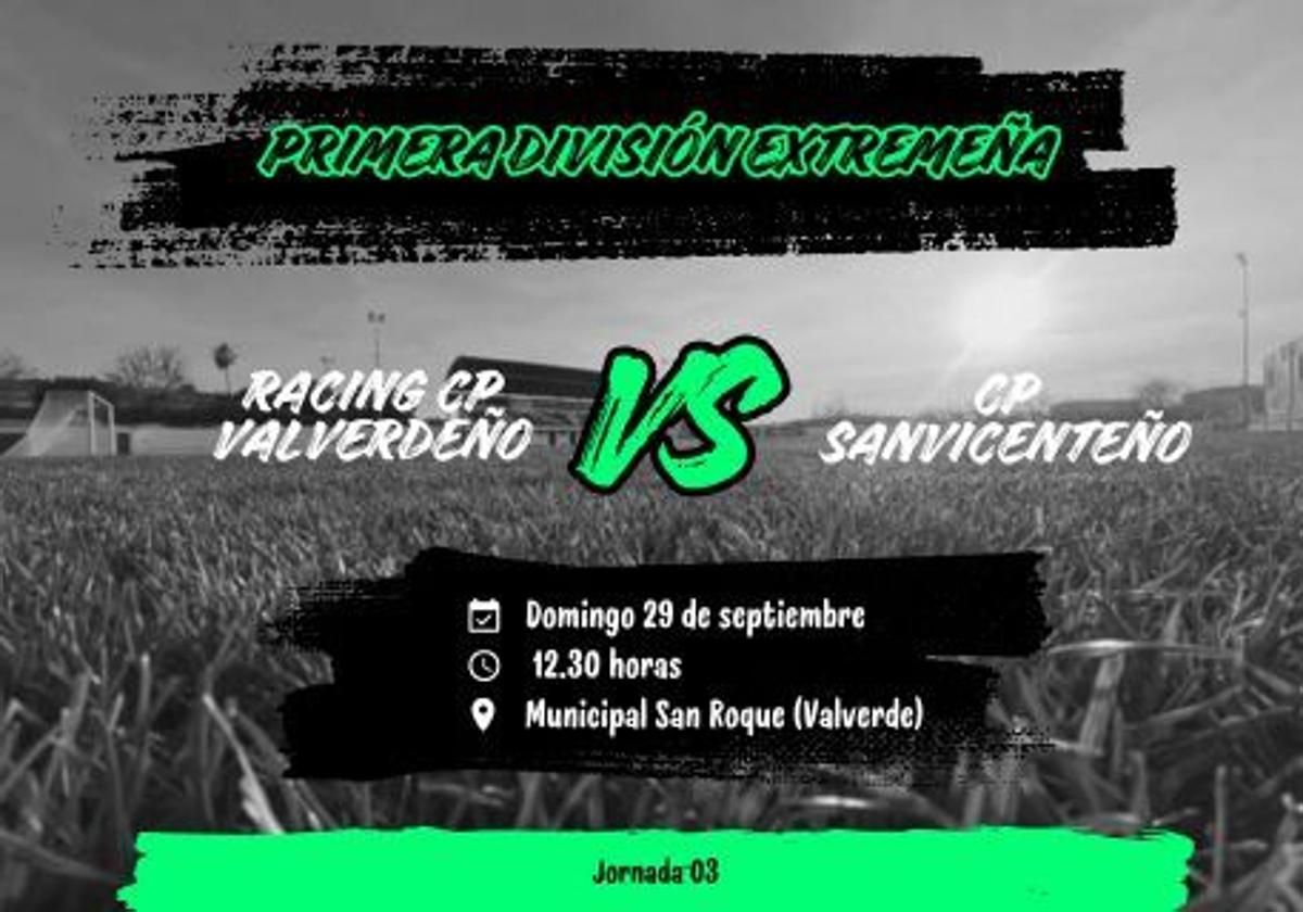 Este domingo, el Municipal de San Roque será testigo del encuentro de la tercera jornada en la Primera División Extremeña que enfrentará al Racing CP ... Valverdeño y al CP Sanvicenteño.