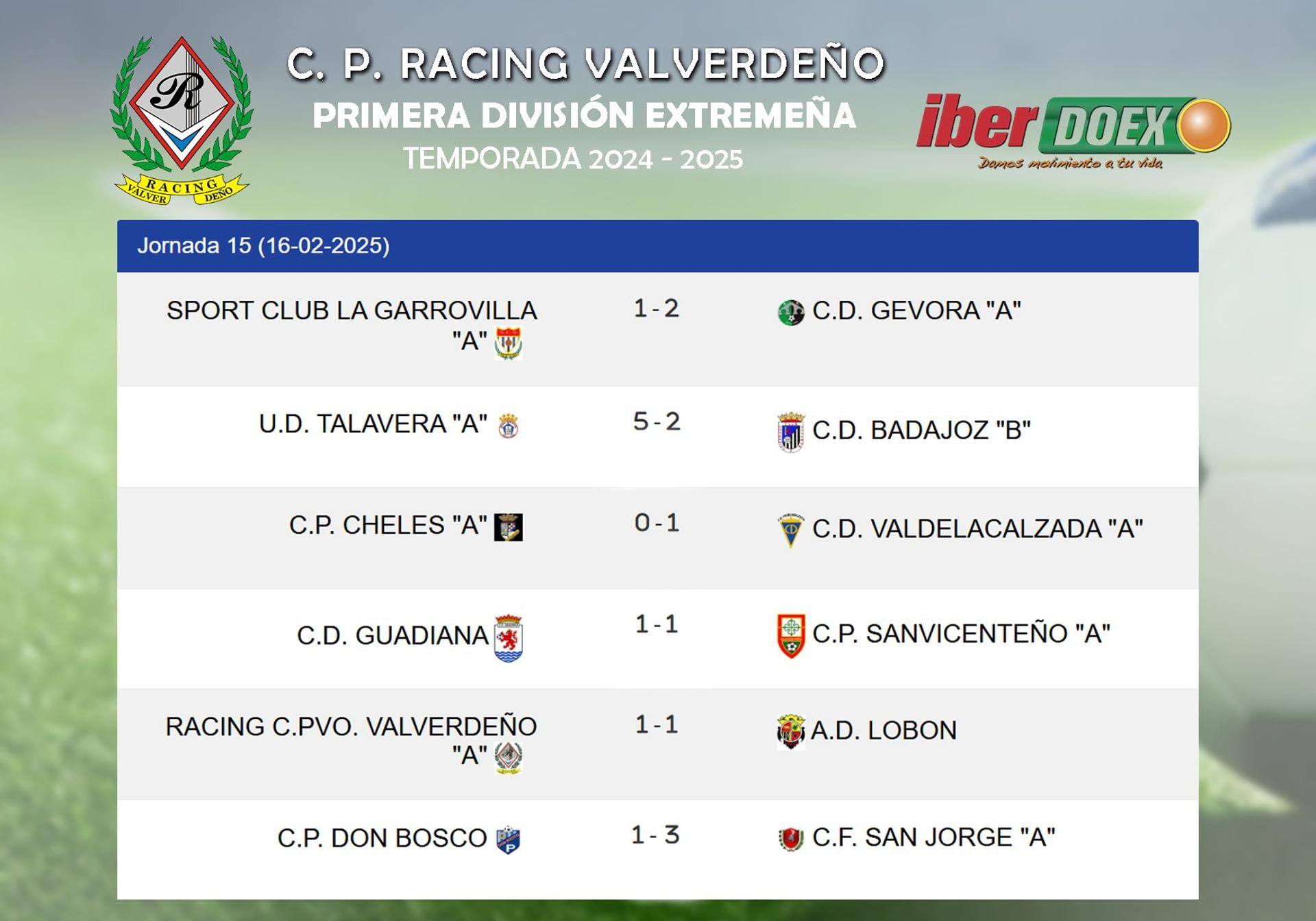 Las cosas siguen igual en cuanto a clasificación se refiere para el Racing Valverdeño, que es noveno con 16 puntos. El filial del Badajoz es décimo con cinco puntos menos y el San Jorge es octavo con cuatro puntos más. Precisamente, este último es el siguiente rival del Racing y esta jornada ha vencido 1 – 3 al CP Don Bosco.