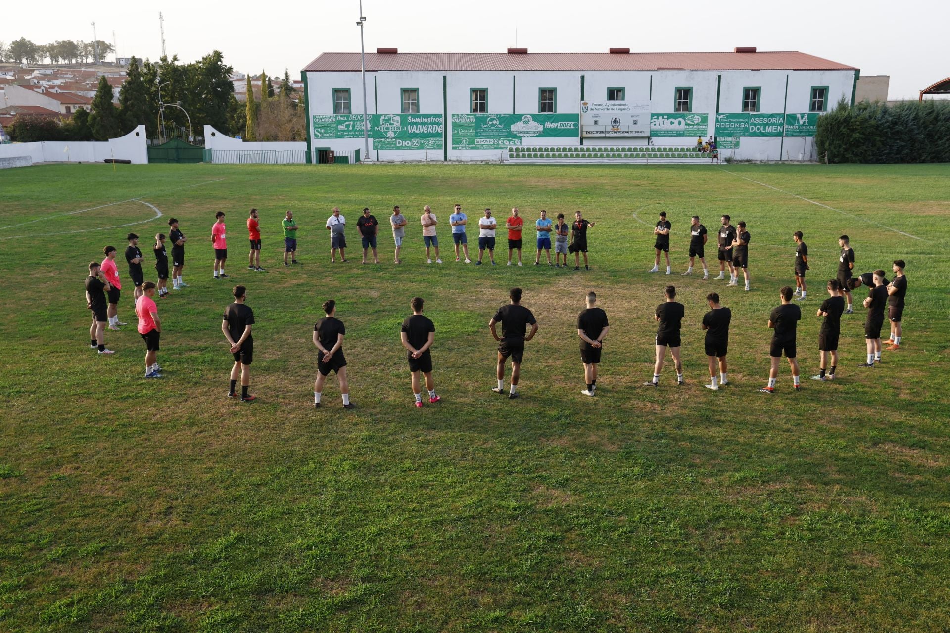 En primer lugar, jugadores, cuerpo técnicos y directivos se reunieron en el centro del campo para proceder a una charla inicial dirigida por la directiva del club, encabezada por el nuevo presidente, Antonio Bravo. Durante esta sesión, se presentaron los jugadores y se dieron a conocer las directrices para la temporada que viene en la Primera División Extremeña, tras el descenso de hace unos meses.