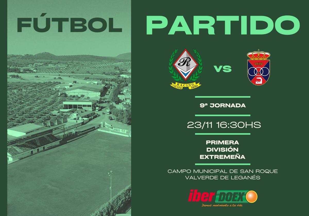El Racing CP Valverdeño de Alejandro Durán recibe esta tarde al AD Villar del Rey, uno de los equipos que está peleando por entrar en los primeros puestos de la clasificación. Partido complicado para los valverdeños que quieren volver a la senda del triunfo para evitar que la zona alta se siga alejando.
