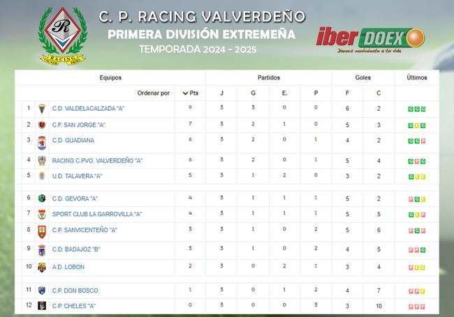 Con estos tres puntos los de Valverde se colocan en cuarta posición con 6 puntos, empatados con Guadiana, tercero. Segundo es el San Jorge, con 7 puntos y en lo más alto está el Valdelacalzada, con plenos de victorias.