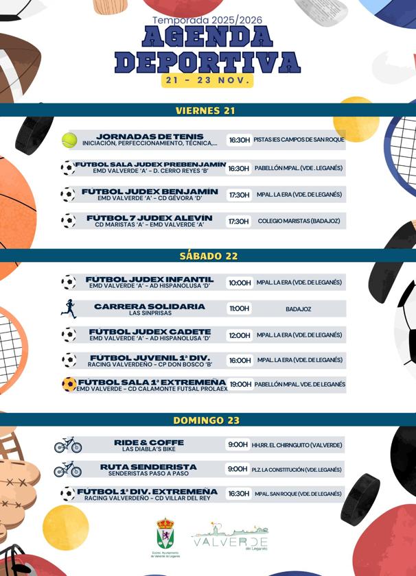 La agenda deportiva del fin de semana ordenada por día y hora es la siguiente: