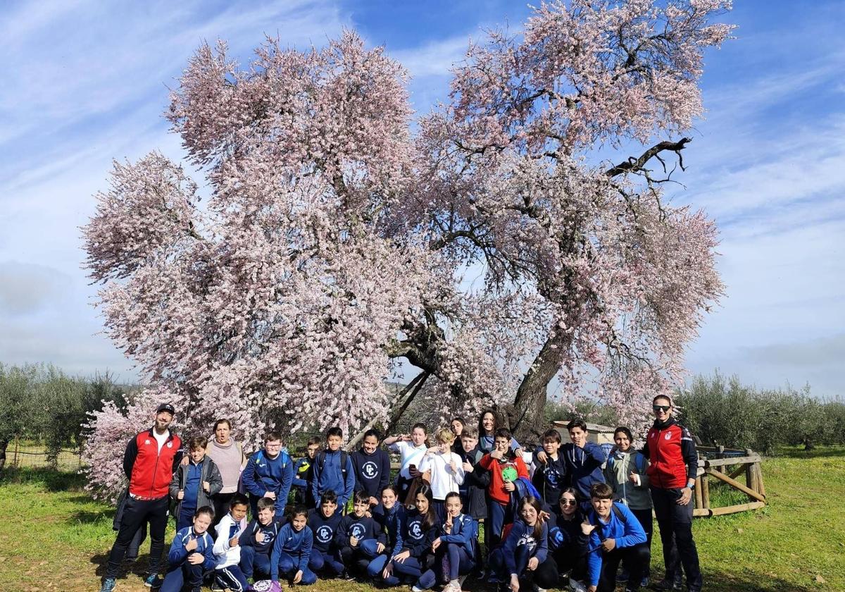 Los escolares del Cristo Crucificado también visitan al Almendro Real