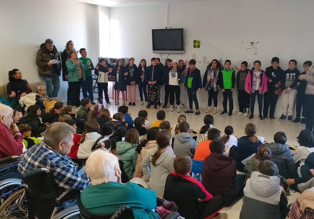 El alumnado del CEIP 'César Hurtado Delicado', organizados por cursos, visitaron a los mayores para cantarles villancicos con varias actuaciones en las que también participaron los usuarios del centro residencial, quienes disfrutaron y aplaudieron a los pequeños artistas.