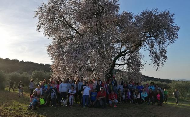 Una vez llegado al punto de destino, los presentes pudieron contemplar el porte y belleza del Almendro Real, que finalizó en tercer lugar en el concurso 'Árbol del Año 2019 de España'.