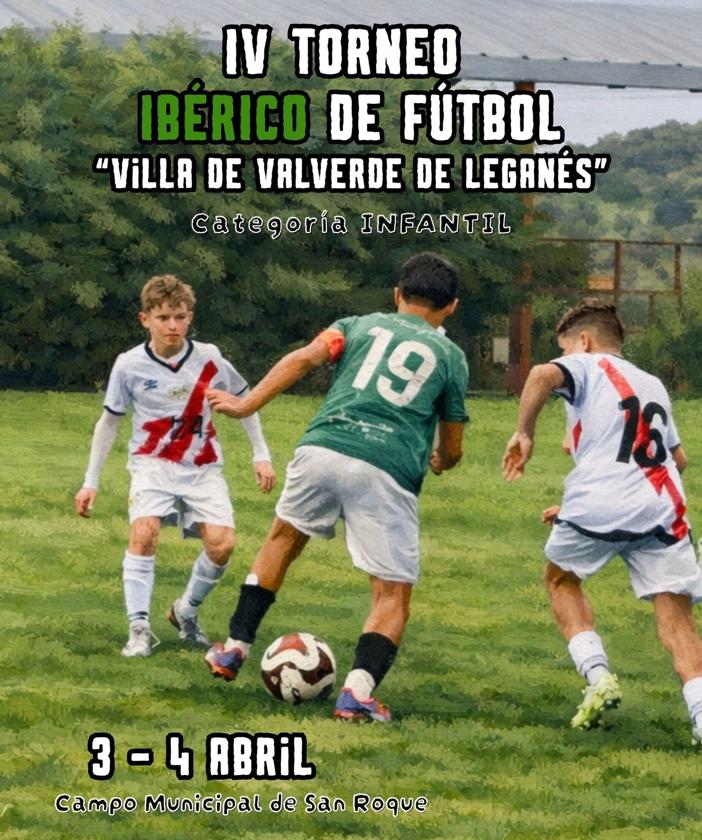 Valverde de Leganés acogerá los próximos 3 y 4 de abril, durante Semana Santa, el IV Torneo Ibérico de Fútbol 'Villa de Valverde de Leganés', una cita que año tras año se está consolidando en el calendario deportivo del municipio y que lo volverá a convertir en el punto de encuentro del fútbol base.