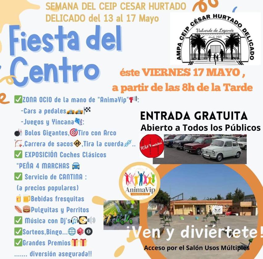 Estos días se está celebrando la semana del CEIP 'César Hurtado Delicado', cuyas actividades comenzaron este lunes y finalizarán el viernes 17 de mayo. Como colofón a esta intensa semana, el viernes tendrá lugar la Fiesta del Centro, que será en las instalaciones del colegio a partir de las 20.00 horas.
