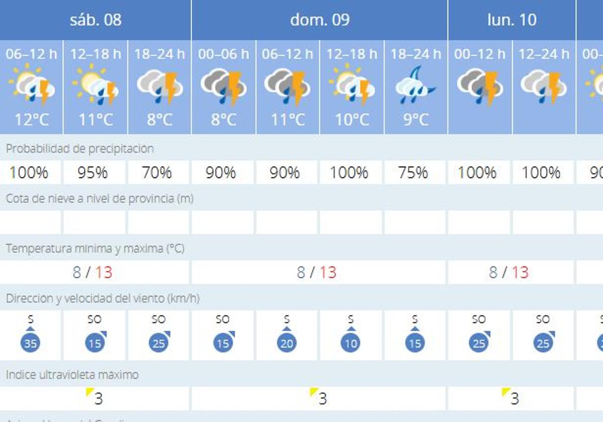 Durante este fin de semana, Valverde de Leganés experimentará condiciones meteorológicas inestables en las que destacarán las lluvias. Para este sábado 8 de marzo, Día Internacional de la Mujer, se prevé lluvia moderada durante prácticamente todo el día, con una probabilidad de precipitación entre el 70% y el 95% y acumulaciones de hasta quince litros por metro cuadrado. Además, las temperaturas variarán entre 13ºC de máximas y 8ºC de mínimas.