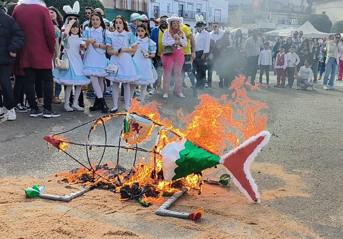 A primera hora de la tarde fue el entierro de la sardina, que fue pasto de las llamas ante la mirada de los curiosos. Las comparsas invitadas deleitaron a los reunidos en la plaza con sus tamboradas y también cantaron algunas murgas como por ejemplo, los valverdeños de Los Escusaos.