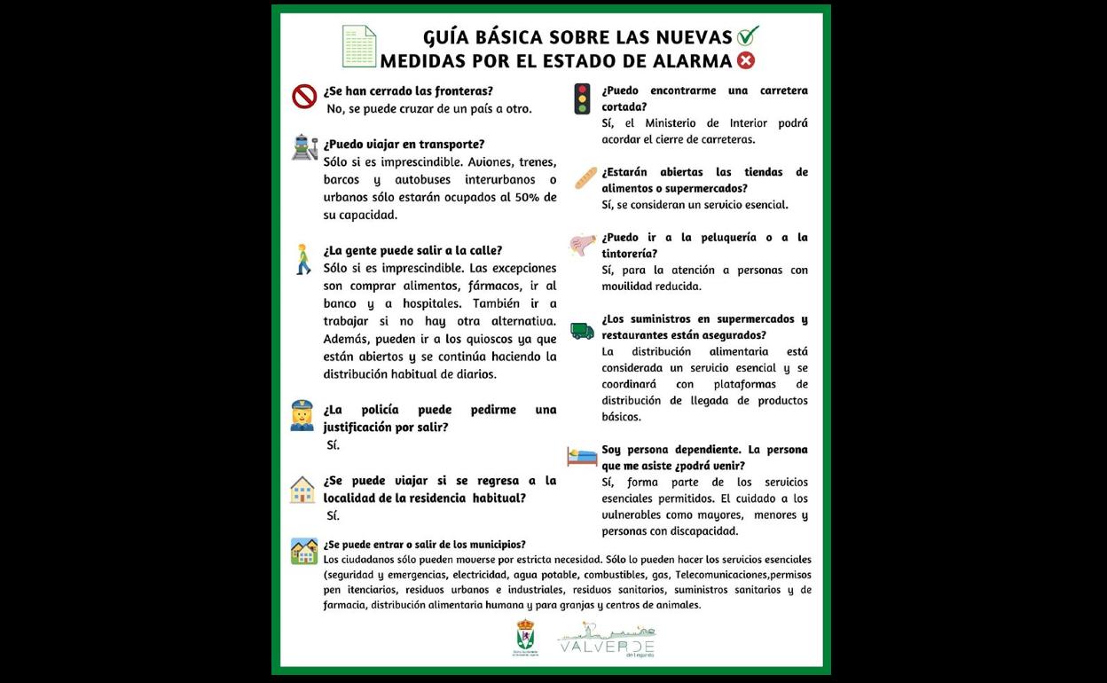 Desde el Ayuntamiento de Valverde de Leganés se está facilitando mucha información para llevar a cabo las medidas interpuestas por la aplicación del Real Decreto ' ... Estado de Alarma' del Gobierno de España.