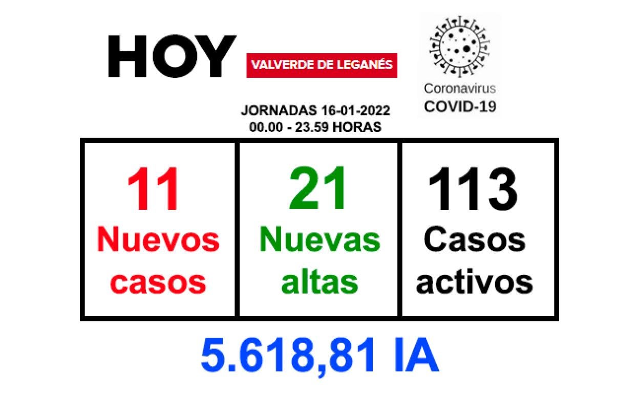 La jornada de este domingo 16 de enero ha dejado 11 nuevos contagios en Valverde de Leganés. Por otro lado, se han notificado 21 recuperaciones. ... El número de casos activos baja hasta los 113.