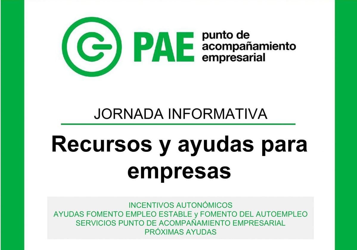 El próximo jueves 13 de junio, el Centro de Empleo, Emprendimiento e Innovación acogerá una jornada informativa organizada por el Punto de Acompañamiento Empresarial (PAE). Esta sesión, que comenzará a las 19.45 horas, está dirigida a empresarios, emprendedores y autónomos bajo el título 'Recursos y ayudas para empresas'.