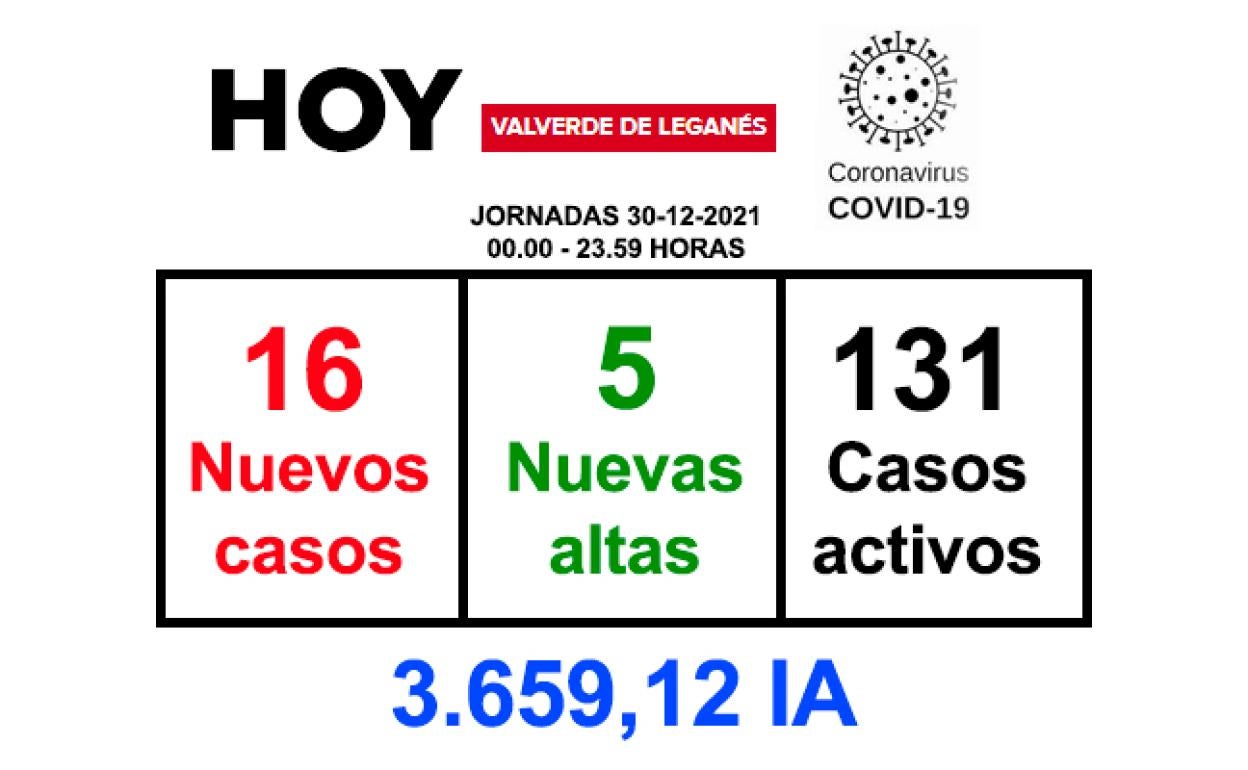 La jornada de este jueves 30 de diciembre ha dejado 16 nuevos contagios en Valverde de Leganés. Por otro lado, se han notificado 5 recuperaciones. ... El número de casos activos sube hasta 131.