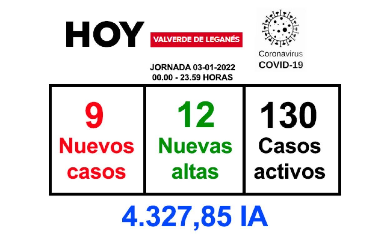 La jornada de este lunes 3 de enero ha dejado 9 nuevos contagios en Valverde de Leganés. Por otro lado, se han notificado 12 recuperaciones. ... El número de casos activos baja hasta los 130.
