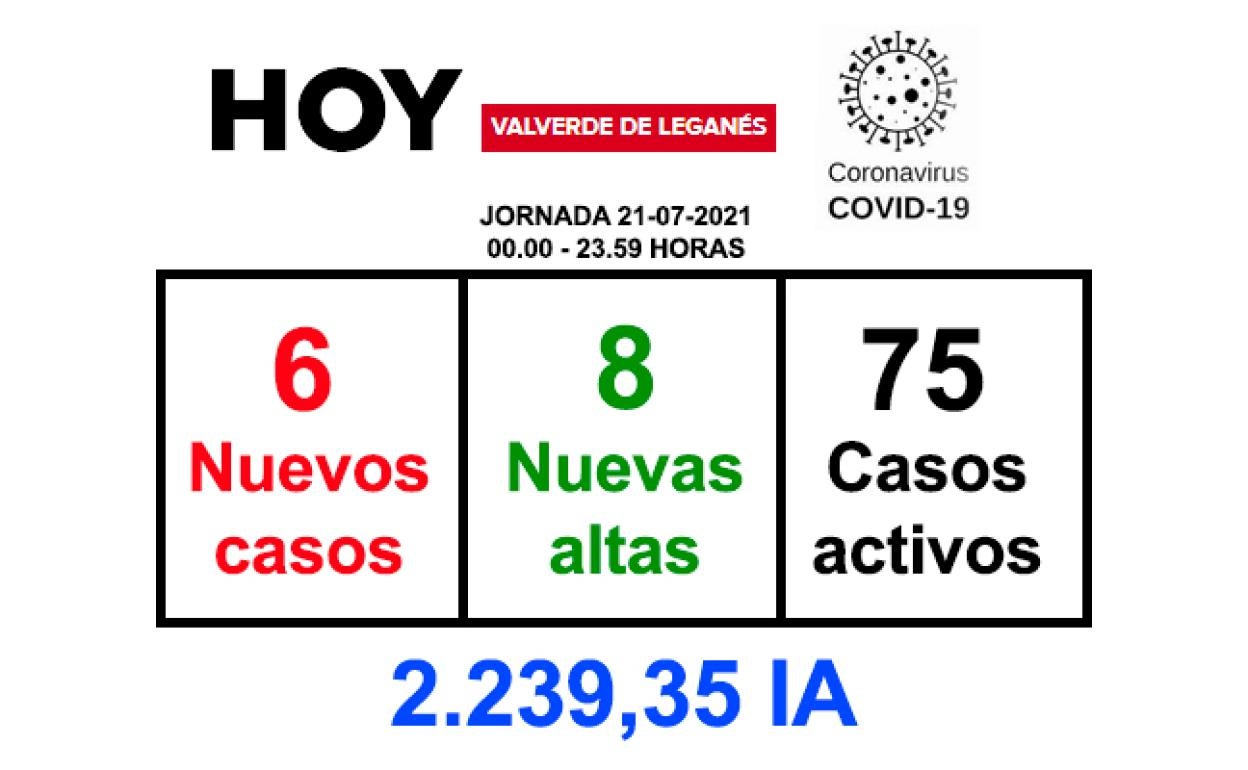 En Valverde de Leganés siguen saliendo casos positivos. La jornada de este miércoles 21 de julio ha dejado 6 nuevos contagios. Por otro lado, Salud ... Pública también ha notificado la recuperación de 8 vecinos, por lo que el número de casos activos en la localidad baja hasta las 75 personas.