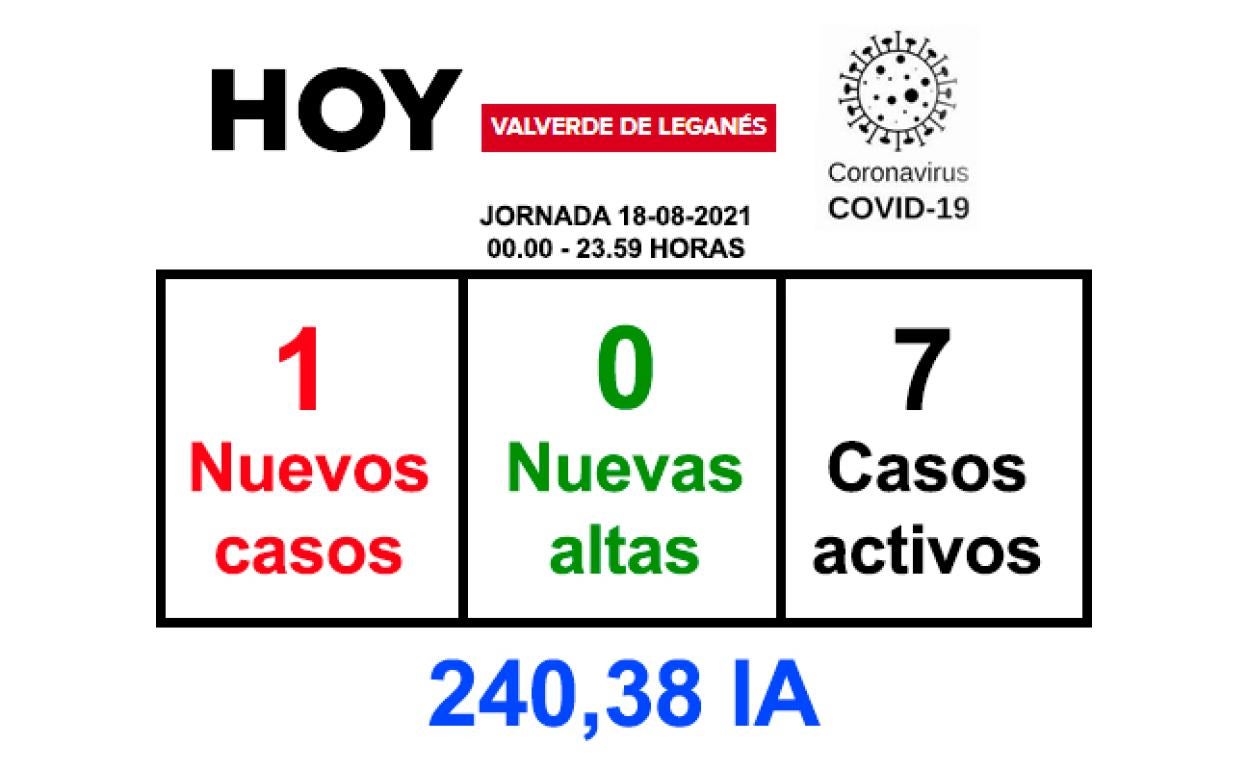 La jornada de este miércoles 18 de agosto ha finalizado en Valverde de Leganés con 1 nuevo positivo y ningún recuperado. Por ello, el número ... de casos activos sube a 7 personas.