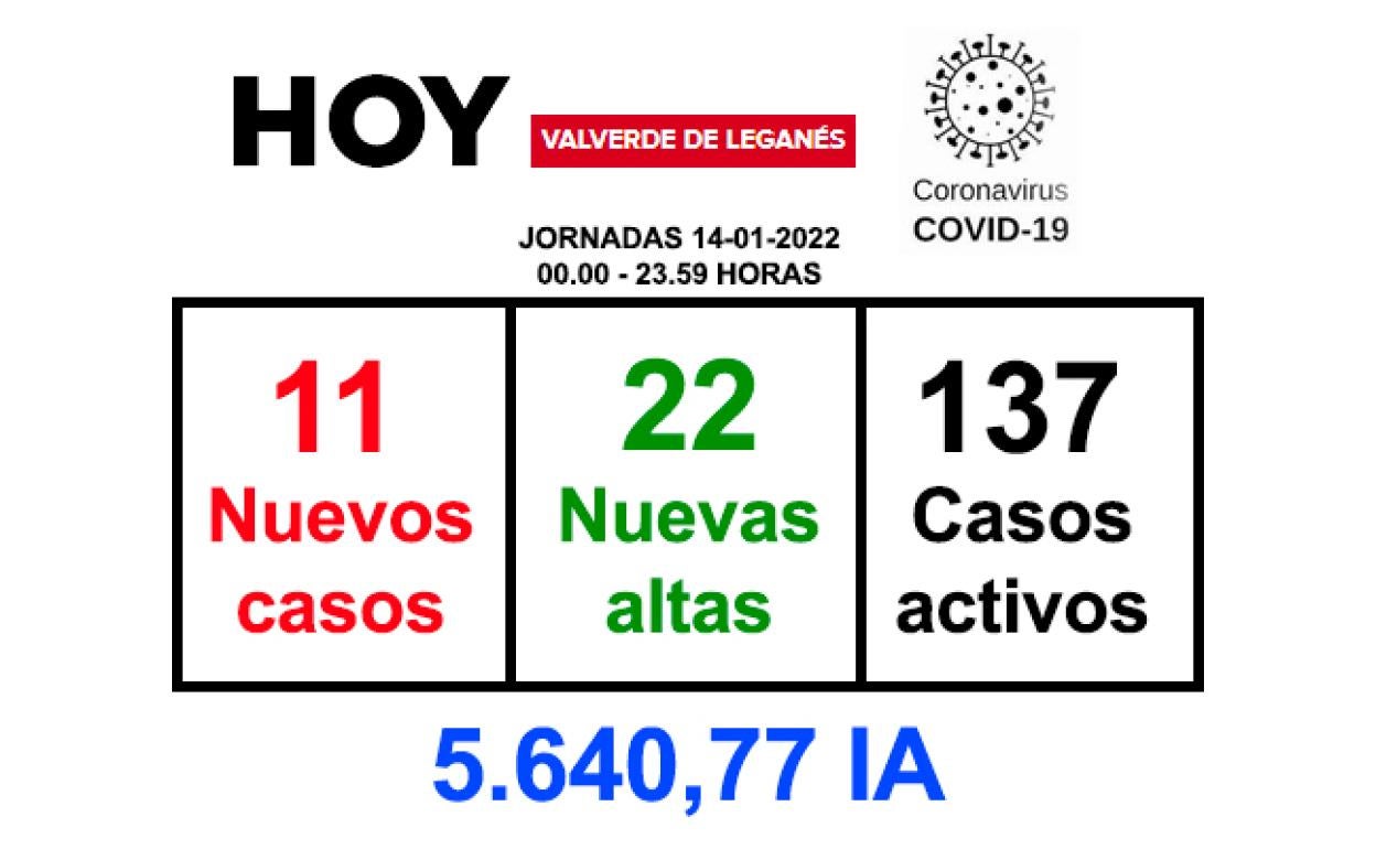 La jornada de este viernes 14 de enero ha dejado 11 nuevos contagios en Valverde de Leganés. Por otro lado, se han notificado 22 recuperaciones. ... El número de casos activos baja hasta los 137.