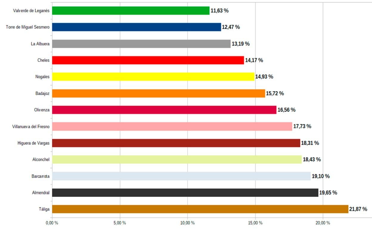 Es la cuarta localidad con más de 3.000 habitantes de la provincia de Badajoz, con menos tasa de desmepleo