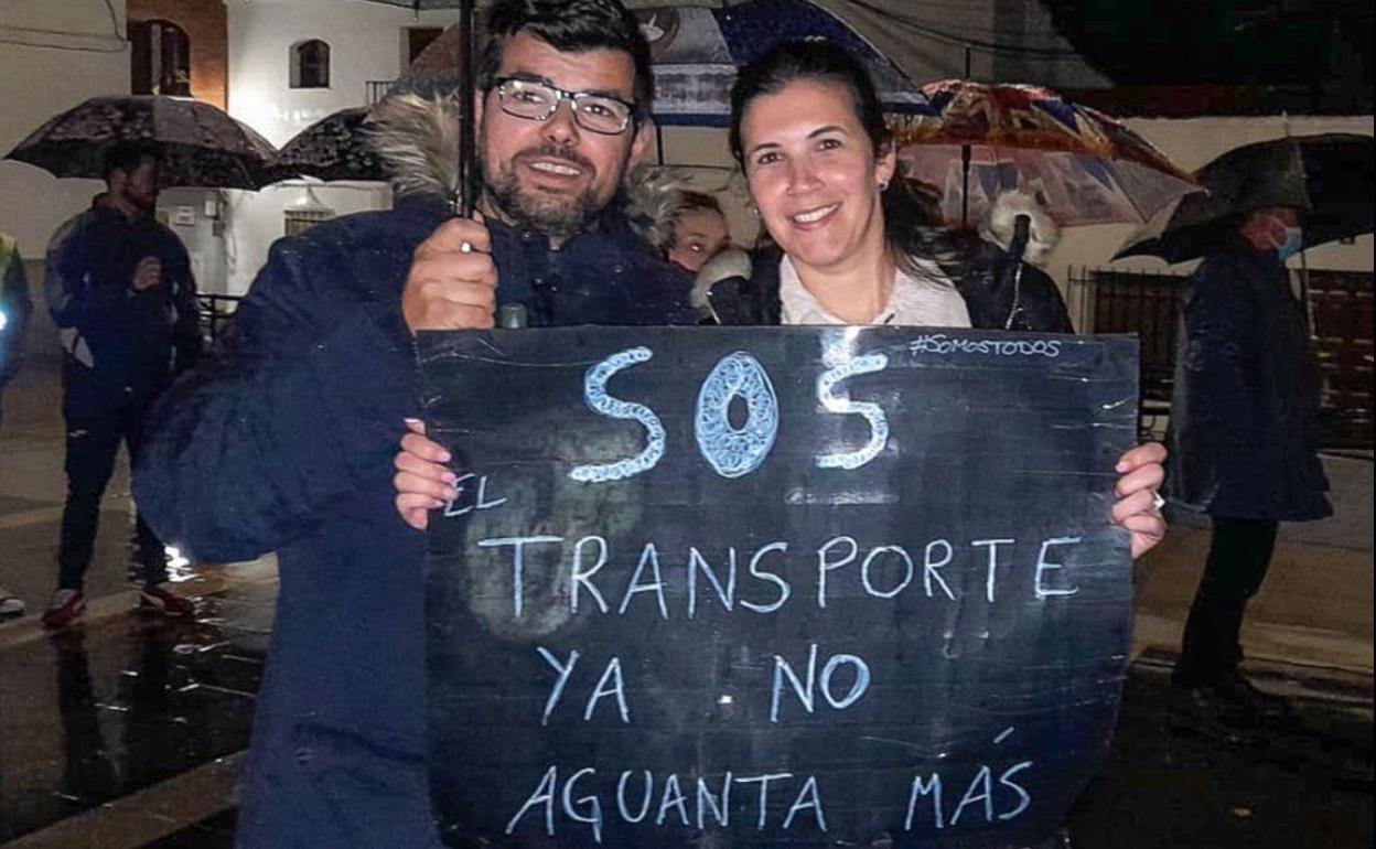 Este domingo en la plaza de la Constitución de Valverde, bajo la lluvia, numerosos transportistas junto a amigos, familiares y otros vecinos, volvieron a manifestarse buscando una mejora en sus condiciones laborares