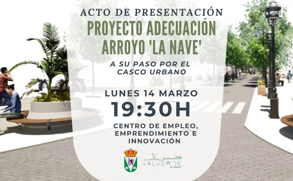 El Centro de Empleo, Emprendimiento e Innovación acoge este lunes 14 de marzo un acto importante para Valverde de Leganés, en el que se presentará ... el proyecto de adecuación del arroyo La Nave a su paso por el casco urbano del municipio. Se trata de una actuación por la que se ha luchado durante muchos años, con el claro objetivo de evitar que se repita la desgracia que vivió Valverde con la riada de 1997 que se llevó por delante la vida de tres vecinas del pueblo, además de provocar cuantiosos daños materiales. Precisamente, el próximo mes de noviembre se cumplirá el 25º aniversario de este trágico suceso.